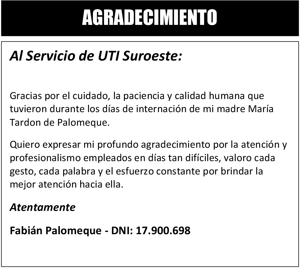 Ha dejado de existir en Esquel a la edad de 67 años. Sus restos serán inhumados el lunes 13 de abril a las 17.30...
