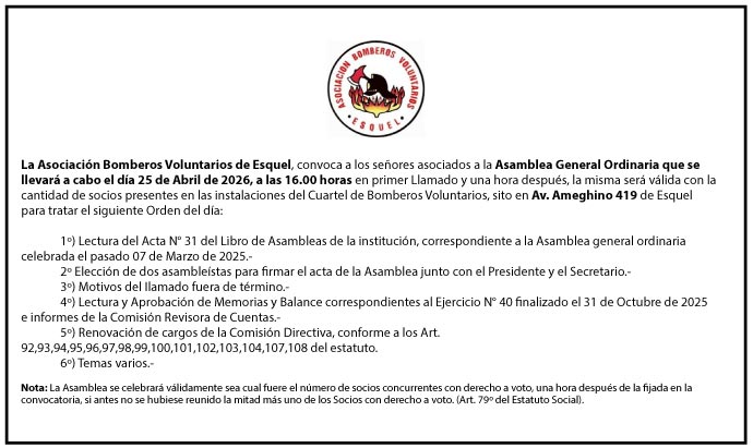 Ha dejado de existir en Esquel a la edad de 52 años. Sus restos serán inhumados el 6 de abril de 2026 a las...