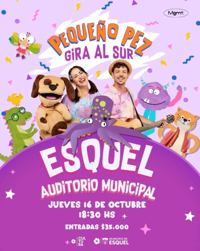El próximo jueves 16 de octubre a las 18:30 horas, el Auditorio Municipal de Esquel recibirá a Pequeño Pez, la banda musical que se ha convertido en una de las grandes revelaciones de la música infantil en Iberoamérica.
