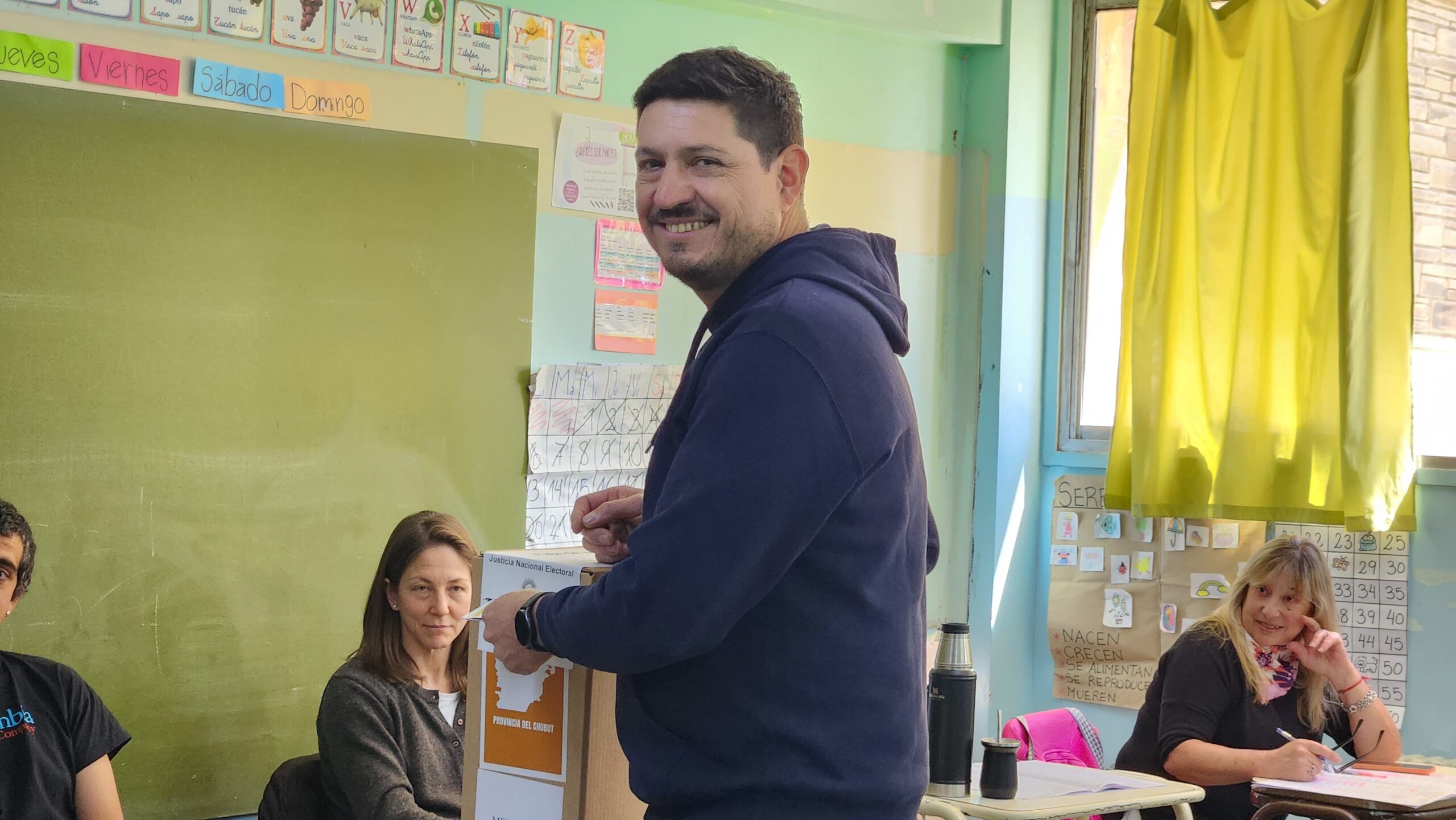 El candidato al Consejo de la Magistratura por Despierta Chubut y secretario de Gobierno de la Municipalidad de Esquel, Diego Austin, emitió su voto este mediodía en la Escuela 767, donde destacó la importancia de participar en los comicios y los cambios introducidos en el sistema electoral provincial.