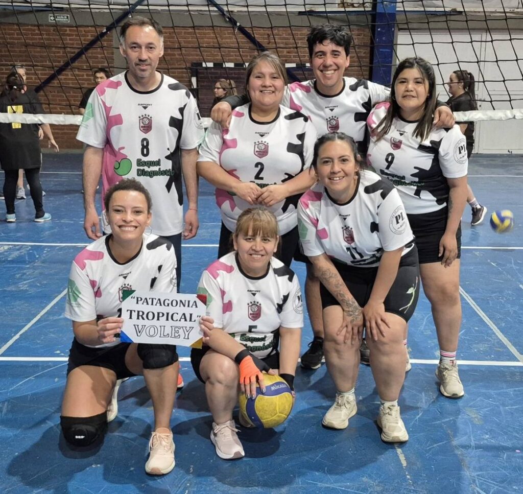 El vóley también ofreció duelos vibrantes y muy parejos. En el primer encuentro, Centro de Día venció a Patagonia Tropical por 2 sets a 1, con parciales de 25-23, 12-25 y 15-12.