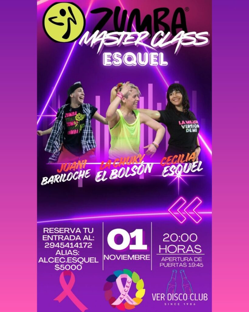 Para cerrar el mes, la Asociación invita a participar de una Master Class de Zumba solidaria, que se realizará el sábado 1 de noviembre a las 20 horas en Ver Disco Club. La actividad estará a cargo de Chuky, Ye Ponce (Lago Puelo) y Juani (Bariloche). “La entrada es de 5 mil lazos y habrá un buffet a beneficio de la Asociación. Cerramos el mes a pura energía”, destacó Tamame.