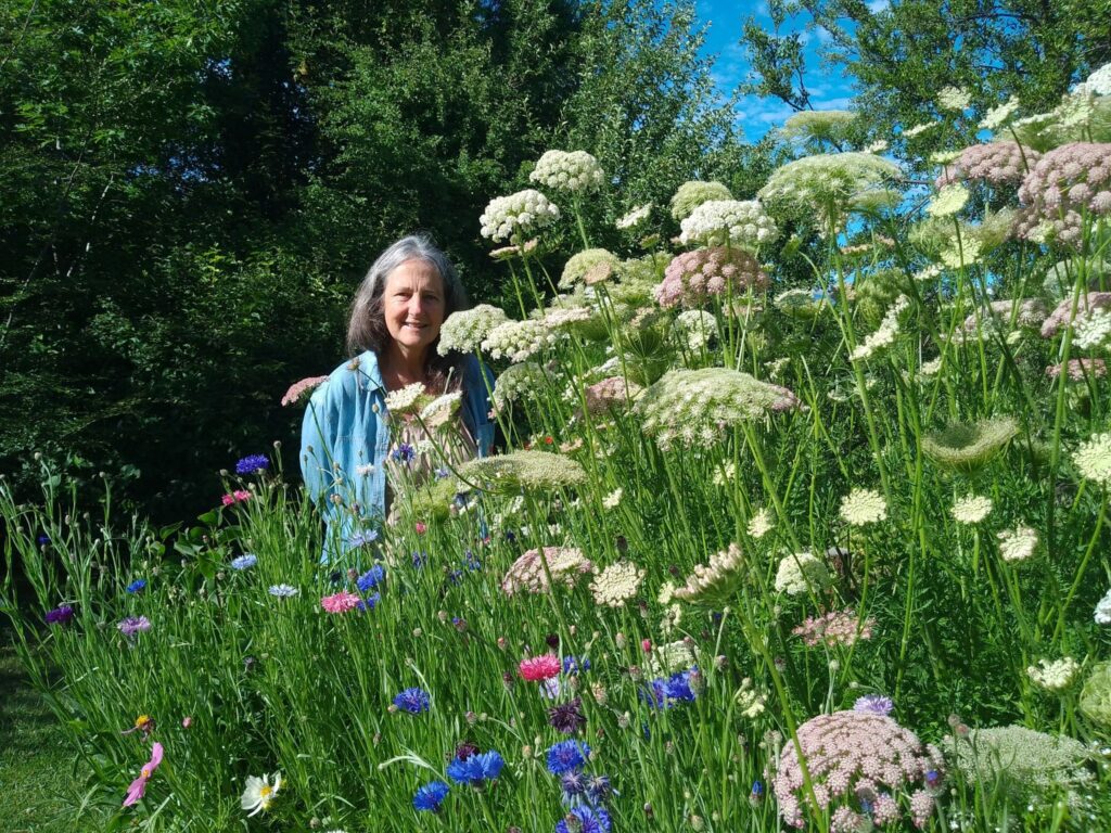 El recorrido por el jardín es un viaje sensorial: los visitantes observan las plantas en flor, escuchan música relajante inspirada en los sonidos de la naturaleza y disfrutan de una merienda al aire libre. “A partir de diciembre florecen las anuales, como amapolas y cosmos, que dan mucho color. Vivimos en una loma con un terreno precioso, todo cubierto de pasto verde”, describió.
