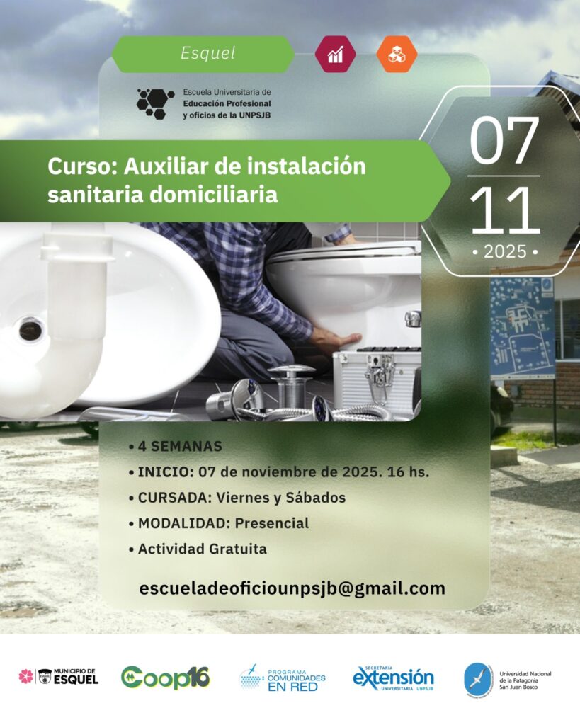 La Universidad Nacional de la Patagonia San Juan Bosco (UNPSJB), a través de su Secretaría de Extensión Universitaria, abrió las inscripciones para un nuevo y valioso curso gratuito: “Auxiliar de Instalación Sanitaria Domiciliaria”.