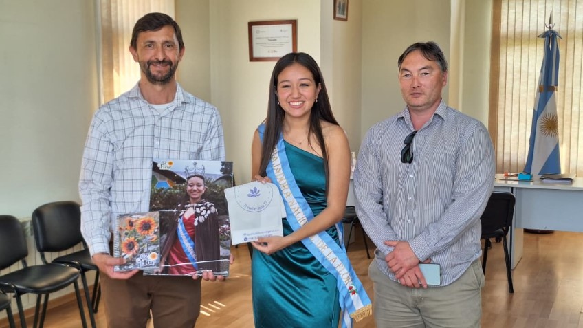 E intendente de Trevelin, Héctor Ingram, recibió en su despacho a Candela Díaz López, quien recientemente fue elegida como 2ª Embajadora de la Fiesta Nacional de la Flor, en la 62° edición de la tradicional celebración que se realiza en Escobar, provincia de Buenos Aires.