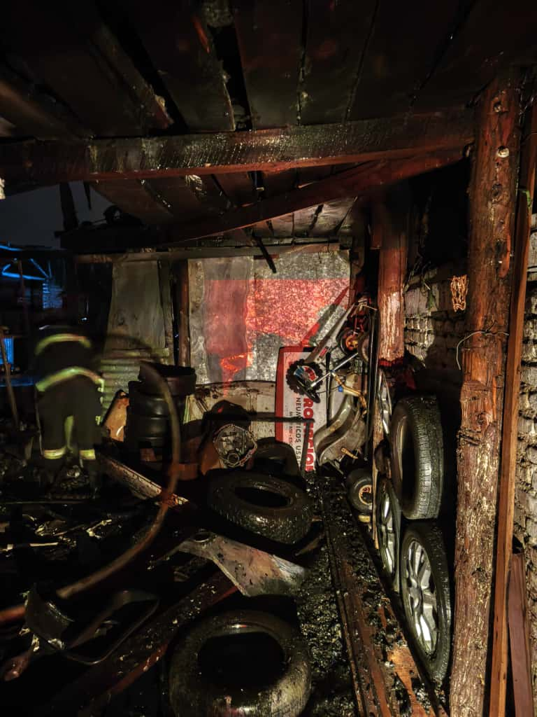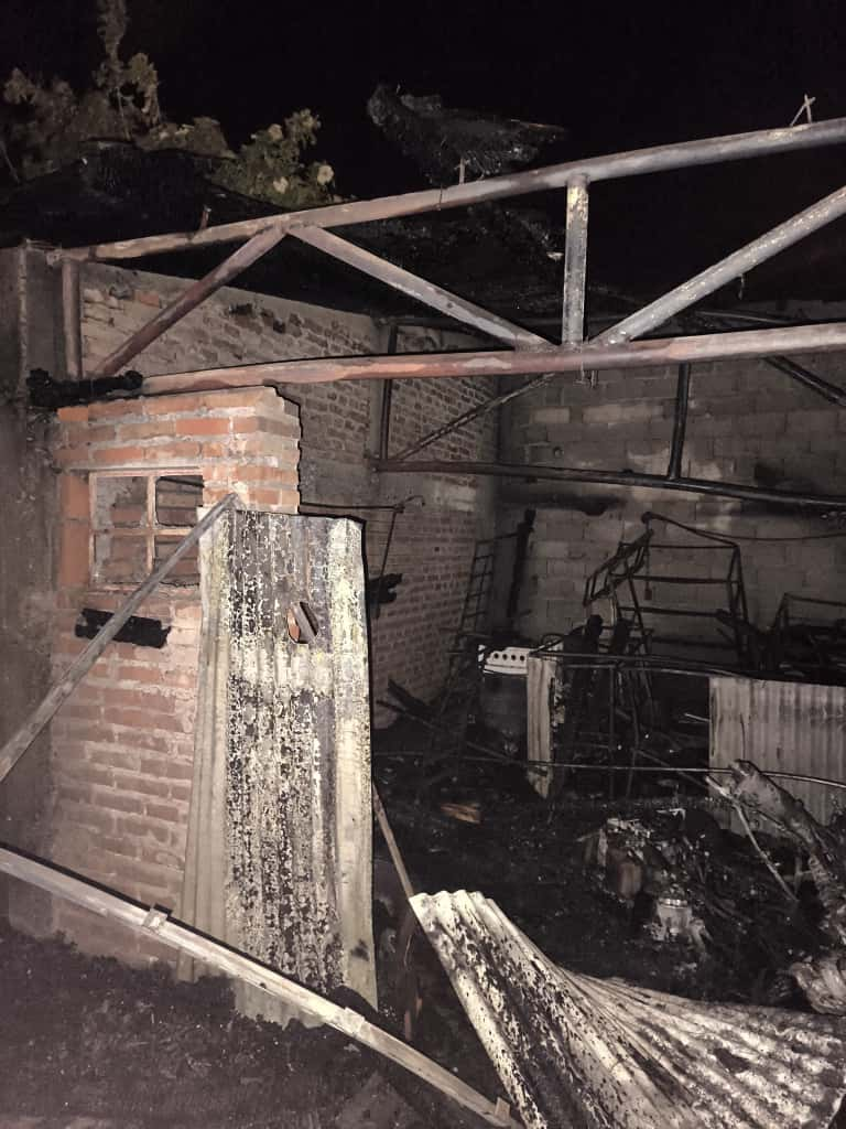 En cuanto a los elementos que se encontraban dentro de las estructuras afectadas, indicó que “en uno de los galpones, que era como un quincho, había muchísimos elementos que normalmente todos guardamos, como herramientas y cosas personales. En el otro, un poco más pequeño, se hacían reparaciones de vehículos, había cubiertas, muchas herramientas, repuestos y restos de combustible”. Todo esto agrandó la magnitud del foco.