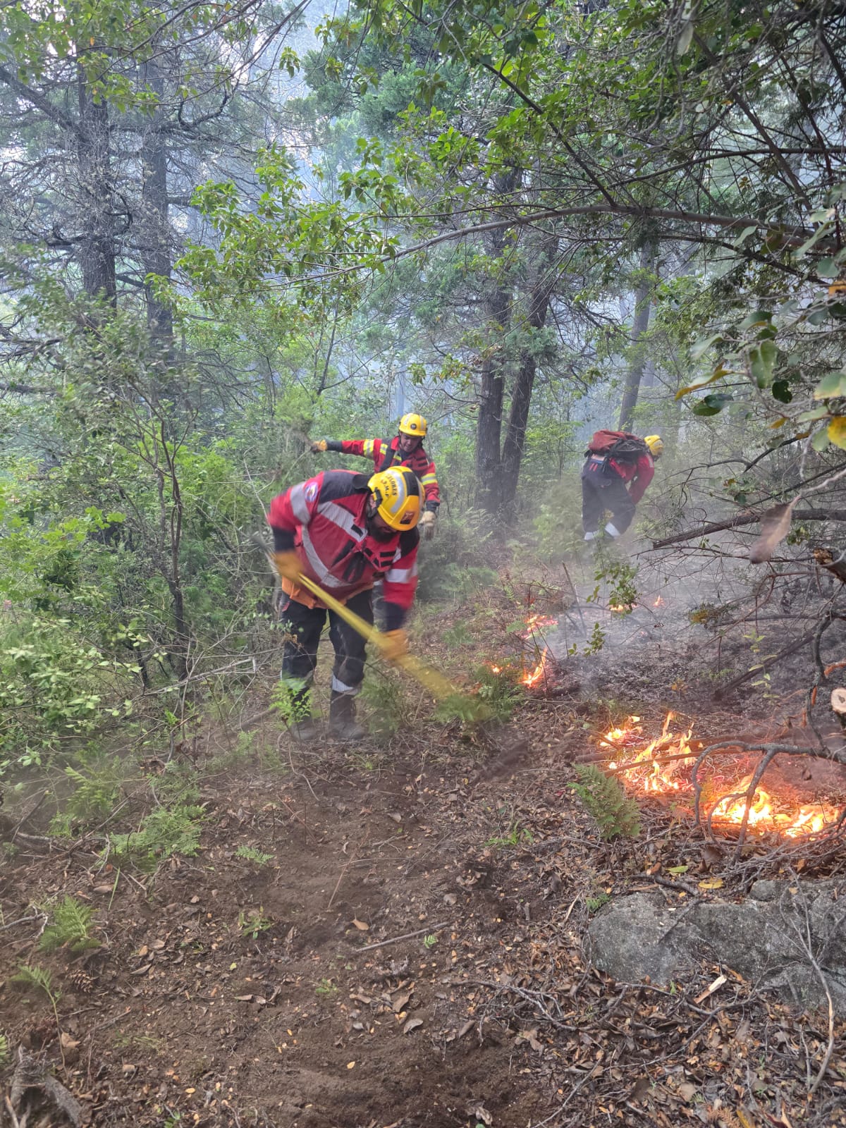 Este miércoles los trabajos comenzaron a las 8 horas. Se continuarán reforzando las líneas y fajas cortafuegos con herramientas manuales y también se efectuarán enfriamientos de puntos calientes en el perímetro del incendio.
