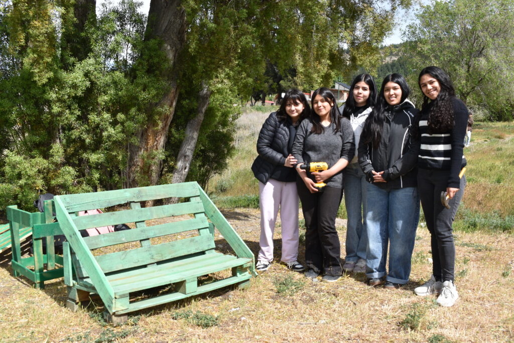 En el marco de la materia Proyecto Solidario, estudiantes de 5º año de la Escuela Nº 735 de Esquel llevaron adelante una iniciativa ambiental y comunitaria que culminó con la instalación de bancos y mesas fabricados con pallets reciclados en el espacio verde conocido como El Maitenal.