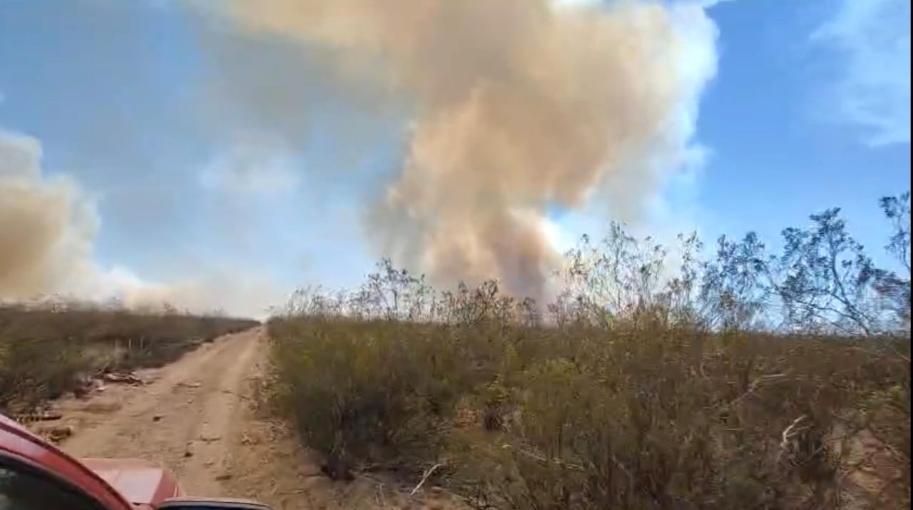 El funcionario reveló que un segundo incendio, desatado también durante la tarde del miércoles sobre la ruta provincial Nº 8, en dirección a la ruta nacional Nº 25, había quedado contenido durante la jornada de ayer. Sin embargo, y en virtud de los fuertes vientos registrados este viernes “se reactivó un foco provocando una importante columna de humo” en la zona.