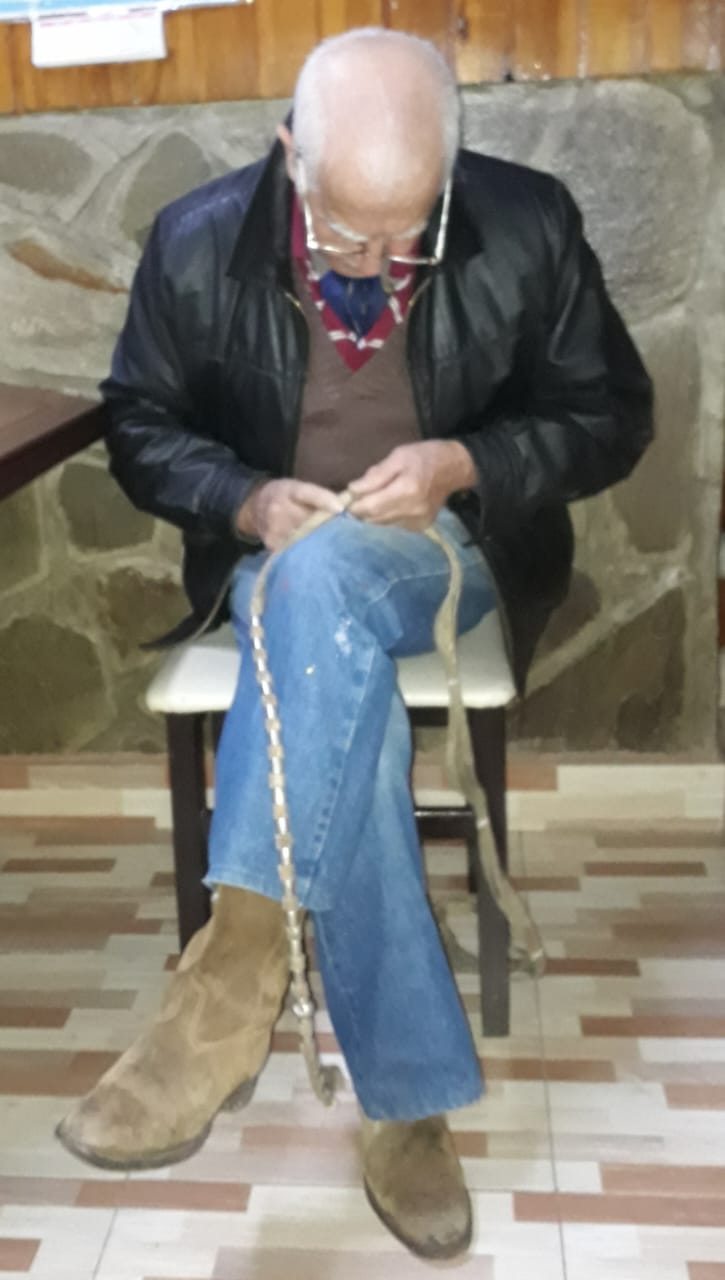 Desde los 10 años, Don Arturo se dedicó con pasión y entrega al arte de la soguería en cuero crudo, una labor que demanda paciencia, precisión y un profundo respeto por el oficio. Con sus manos, moldeó innumerables piezas —sogas, rebenques, vainas y chapeados— que hoy forman parte del patrimonio culturl de la región.