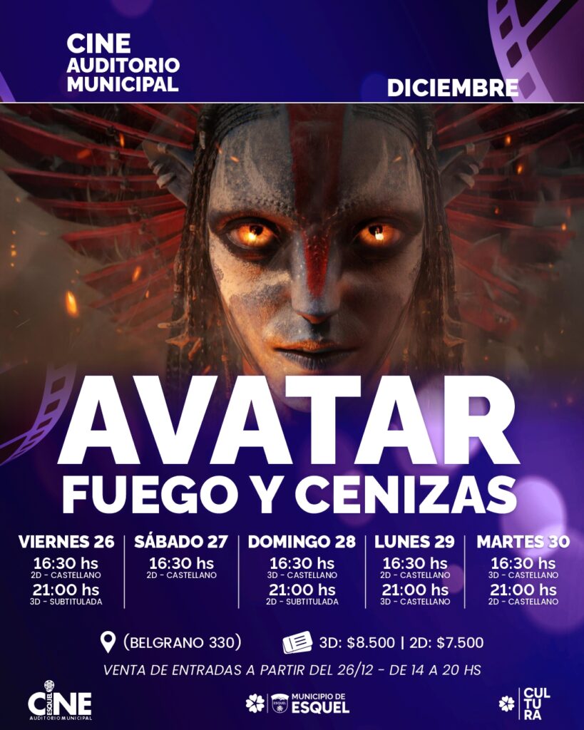 La esperada tercera entrega de la exitosa saga de ciencia ficción creada por James Cameron, “Avatar: Fuego y Ceniza”, se estrena en la pantalla grande y promete una experiencia cinematográfica épica, cargada de acción, emoción y deslumbrantes paisajes alienígenas. La película tiene clasificación SAM13 y una duración de 195 minutos.