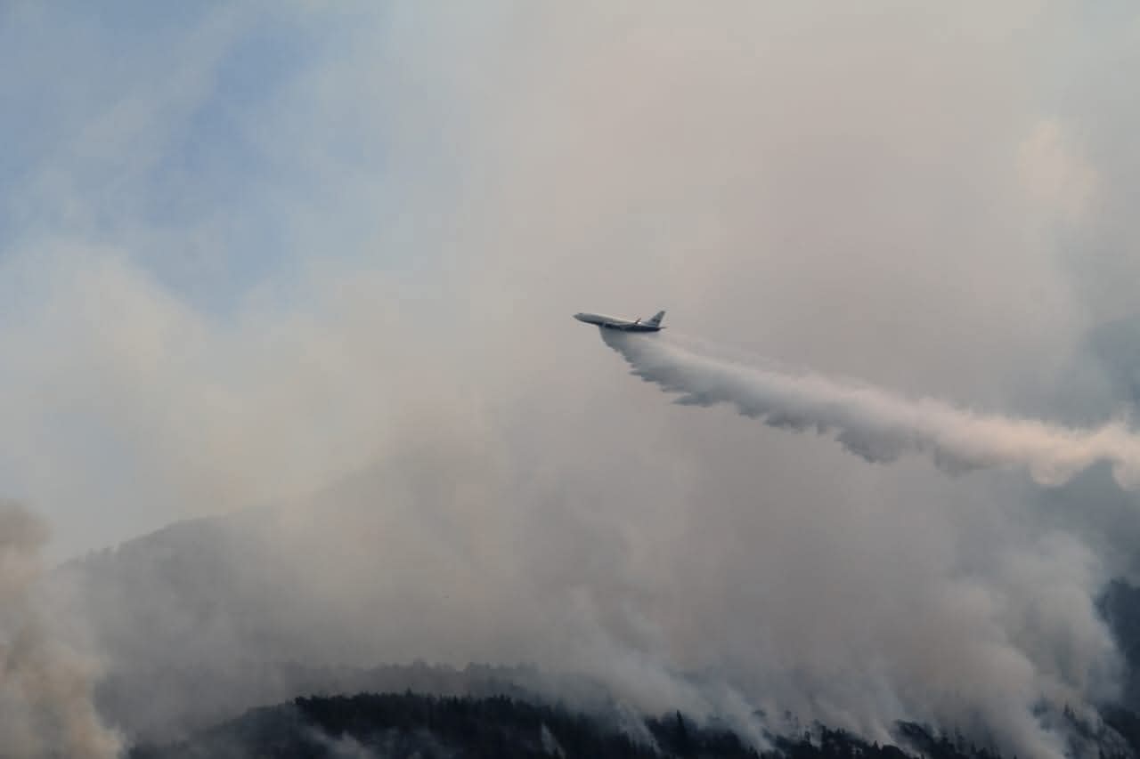El avión hidrante más grande de Latinoamérica, y uno de los de mayores dimensiones a nivel mundial, se sumó al intenso operativo para sofocar las llamas en la zona de Puerto Patriada.