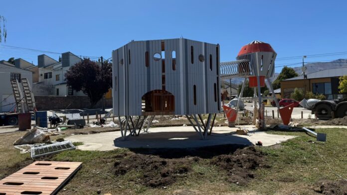 Los trabajos continuarán durante la semana, con el objetivo de inaugurar la renovada Plaza del Cielo en el marco de los 120 años de Esquel.