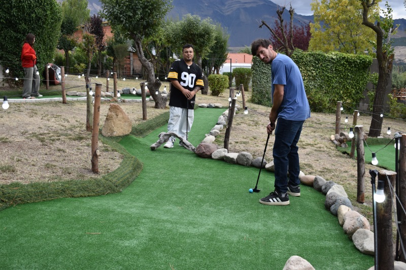 En diálogo con este medio, Danilo García comentó que el minigolf tiene nueve hoyos en total (cada uno con distinto grado de complejidad) y que es el “más grande de la Patagonia”. Está ubicado en el jardín de Pintó.