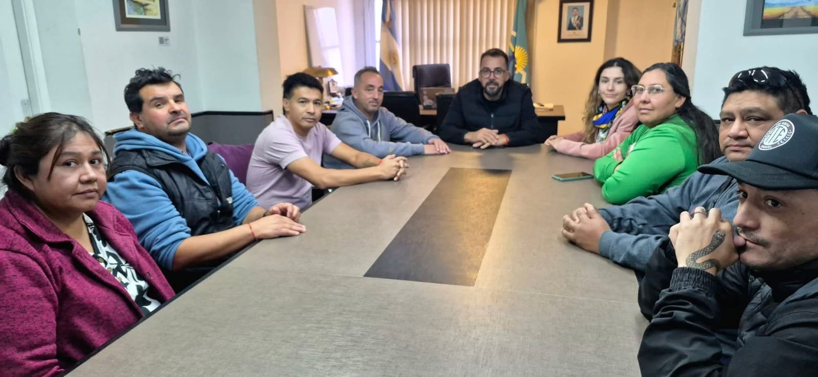 El gremio estuvo representado por integrantes de la Seccional Esquel, el secretario Tomás Ulloga, Claudia Antrichipay y Eusebio Ramayo. Por parte del Ejecutivo Municipal participaron el intendente Matías Taccetta, el secretario General de Intendencia, Juan Ripa, y la secretaria de Economía y Desarrollo Productivo, Florencia Garzonio.