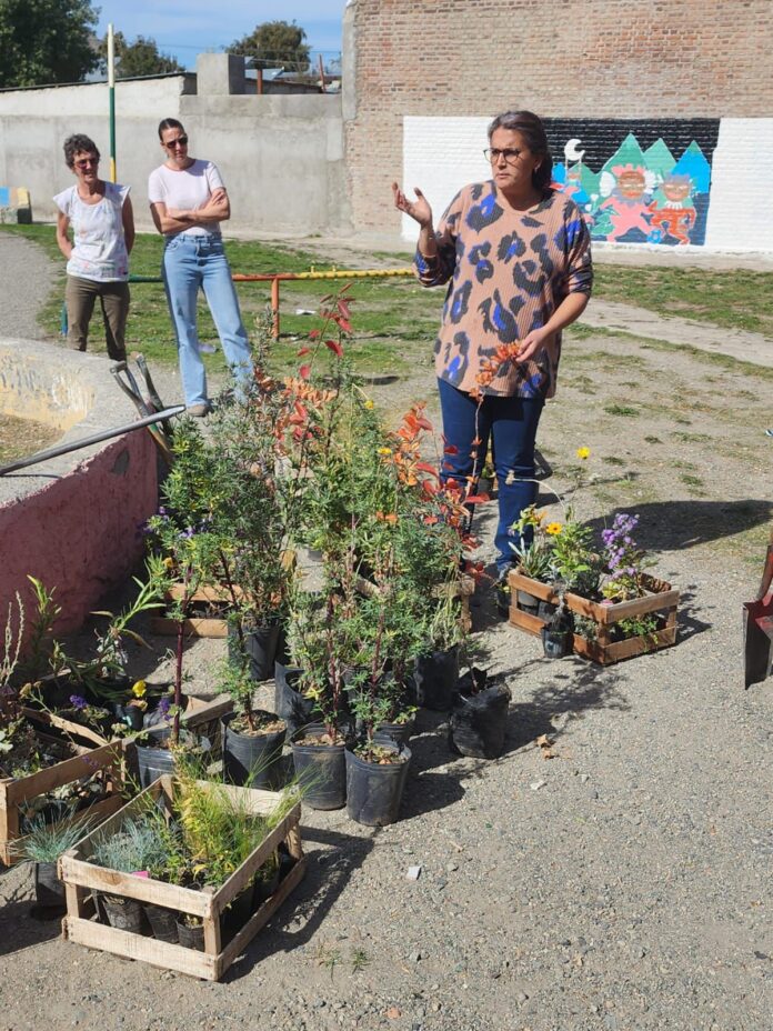La actividad se desarrolló en dos etapas: una instancia teórica en instalaciones del INTA y una parte práctica en el barrio 28 de Junio, donde se realizó una plantación comunitaria en un espacio público.